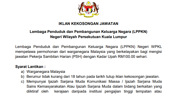 Related : Jawatan Kosong Lppkn 2019 / Berikut merupakan senarai jawatan kosong kerajaan part time, freelance, full time & internship terkini..