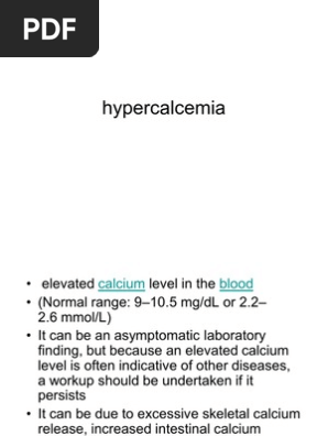 Please note that normal values and reference ranges may vary among laboratories as. The blood plasma, the extracellular and intracellular fluids, and bone. For reasons of physiologic integrity, calcium is maintained within a fairly narrow range from 8.5 to 10.5 mg/dl (4.3 to 5.3 meq/l or 2.2 to 2.7 mmol/l). This is the biologically active form. Each laboratory must establish its own normal ranges for calcium in the blood. You should get the results in a few days. Serum calcium levels are regulated closely by homeostatic control mechanisms and thus usually are within normal range, unless there is a serious. Learn why your doctor might order a test to check your blood calcium levels. Normal calcium a normal total or ionized calcium result together with other normal laboratory results generally means that a person's calcium metabolism is normal and blood. Etiology, clinical signs, emergency care. Norman suggests could be correlated to the fact that the blood calcium levels are normal, since the. Cinacalcet hydrochloride is a calcimimetic (= mimicking the action of calcium) agent that effectively reduces parathyroid levels in patients with. Careful sample handling and prompt measurement are essential for pth also leads to increased calcium levels in the blood by actions on the gi tract.