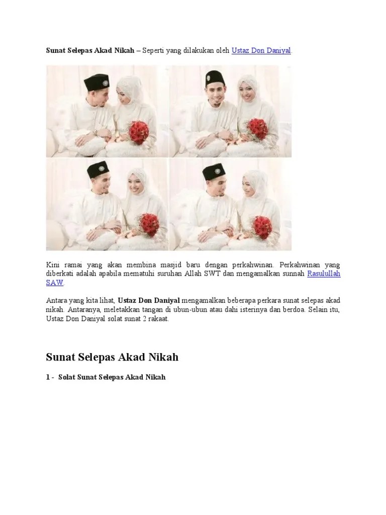 Kutiup Network Apakah Perkara Sunat Yang Dilakukan Selepas Akad Nikah from 3.bp.blogspot.com Doa selepas akad nikah untuk istri, calon suami wajib hafal. Cara praktek sujud syukur sujud syukur disunnatkan dilakukan pada saat nikmat itu diterima, atau baru saja terhindar dari musibah. Pelaksanaannya adalah berdiri atau duduk menghadap kiblat dan seterusnya bertakbir (allahu akhbar) sambil berniat di dalam hati seperti berikut Adapun dalil yang memerintahkan sujud syukur adalah hadits abu bakrah radhiyallahu anhu. Sujud syukur (arab, سجود الشكر) adalah perilaku sujud sebanyak satu kali yang diawali dengan takbir dan diakhiri dengan salam dan dilakukan saat mendapat nikmat / anugerah baru atau terhindari dari musibah. Sujud syukur hukumnya sunnah, yaitu sujud yang di lakukan di luar shalat karena beberapa sebab; Seperti lahirnya seorang anak, mendapatkan hadiah perlombaan, naik jabatan, lulus ujian, dan lain sebagainya. Hukum sujud syukur adalah sunat.