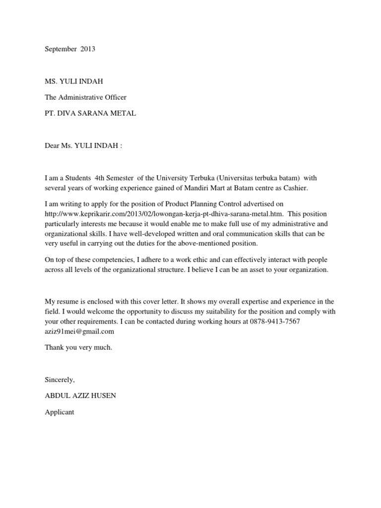 Clear, accurate, easy to understand. Contoh surat berhenti kerja bahasa english. Proposal pengembangan dan tata kelo. This story begins with the end. The covering letter of application.